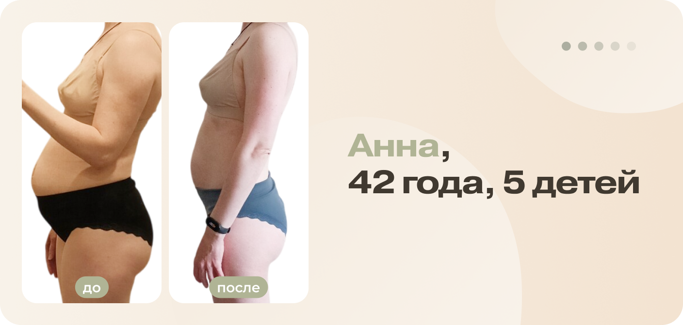 Когда-то Анна считала, что спорт не про неё. До 35 лет ей помогала генетика: двое детей, но она по прежнему тонкая и звонкая. Третья беременность показала, что так будет не всегда. В отчаянии стала искать упражнения в интернете, пробовала работать над диастазом. Безрезультатно. Пока однажды не узнала о курсе плоского живота Ольги Байкиной.